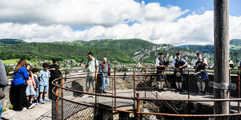 Das Programm wurde ergänzt mit Wissenswertem zur Erfindung und Evolution der Fotografie mit zahlreichen Objekten, Führungen von Bianca Ott (Kuratorin), stimmungsvoller Dudelsackmusik mit Musiker*innen von den «Bag-Pipers of Wangen an der Aare» und natürlich durfte auch die legendäre Suppe nach mittelalterlichem Rezept nicht fehlen.